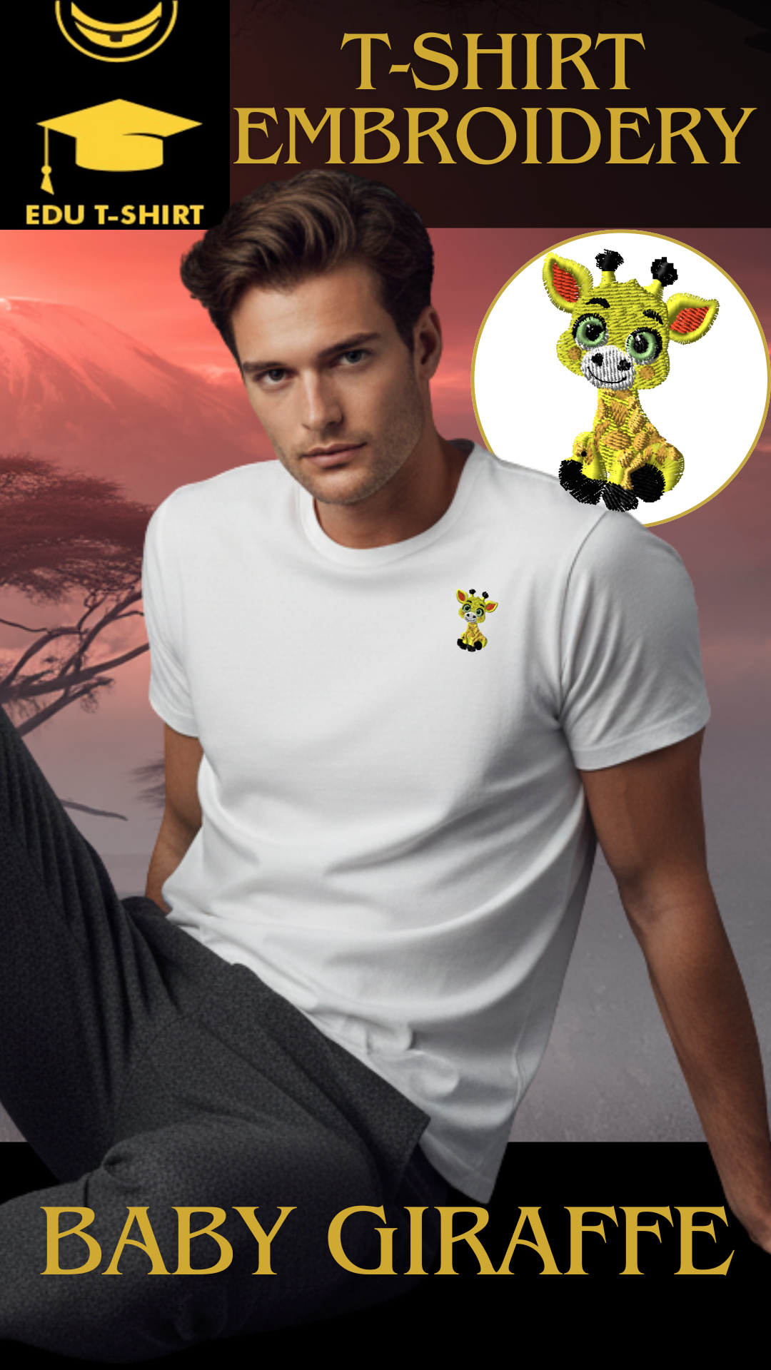 T-SHIRT EMBROIDERY Of Baby GIRAFFE Tee tshirt