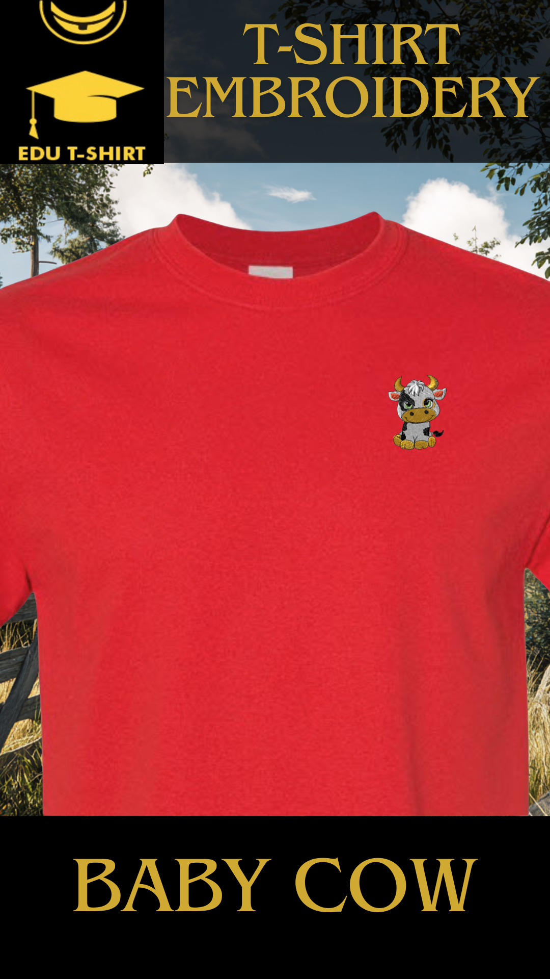 T-SHIRT EMBROIDERY Of Baby COW Tee tshirt