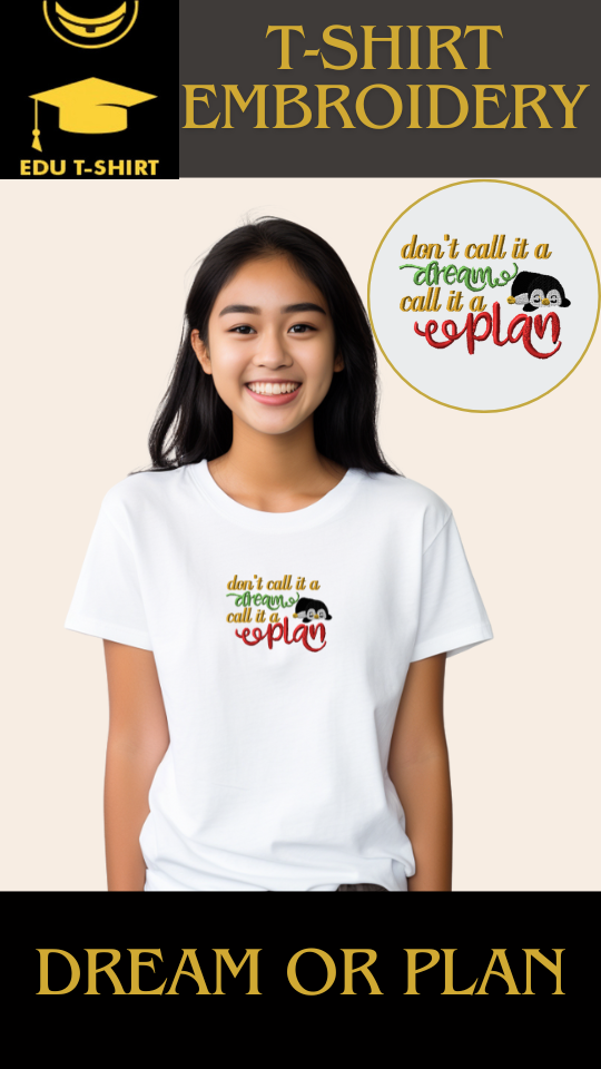 T-SHIRT EMBROIDERY Of PENGUIN Dream or Plan Tee tshirt