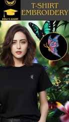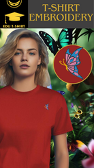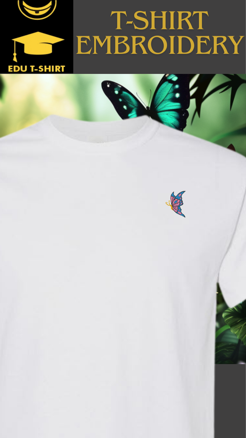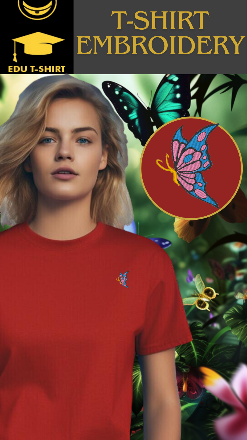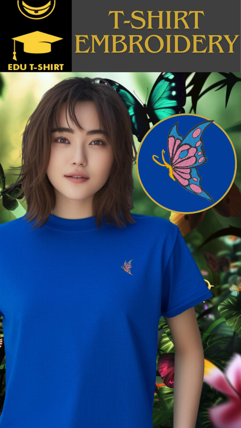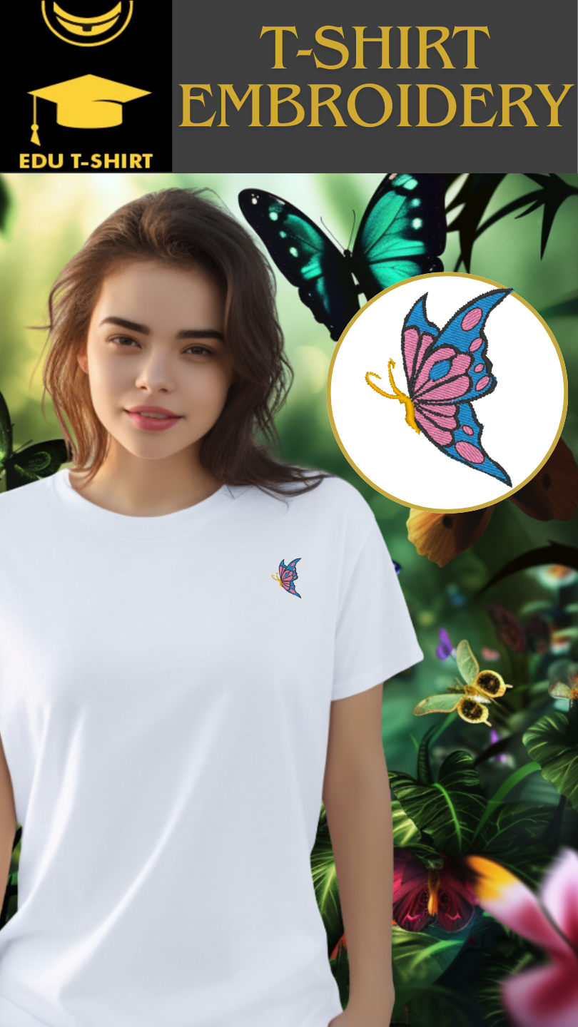 T-SHIRT EMBROIDERY Bluish Pink BUTTERFLY Tees Tshirt