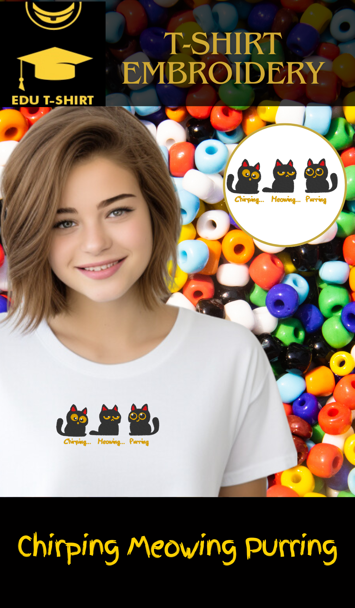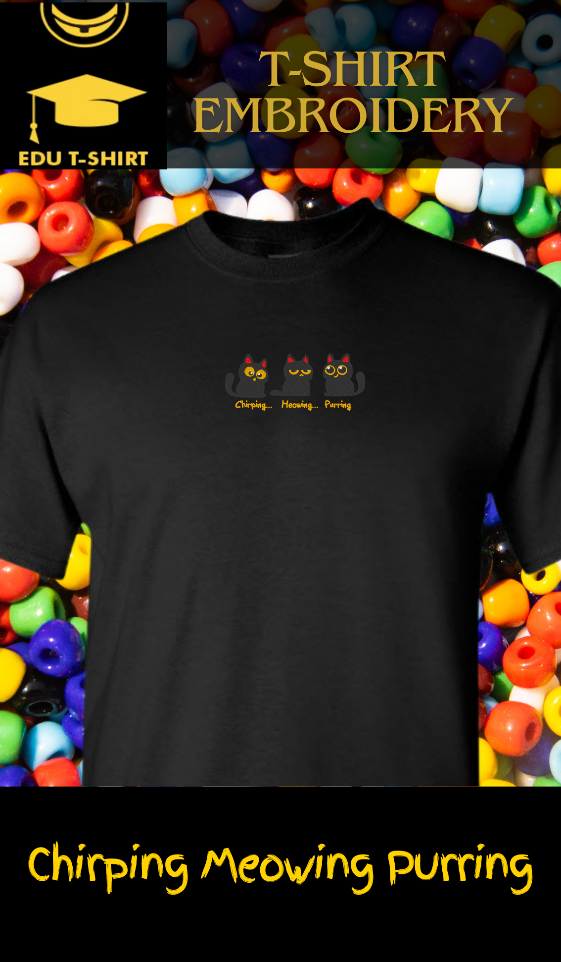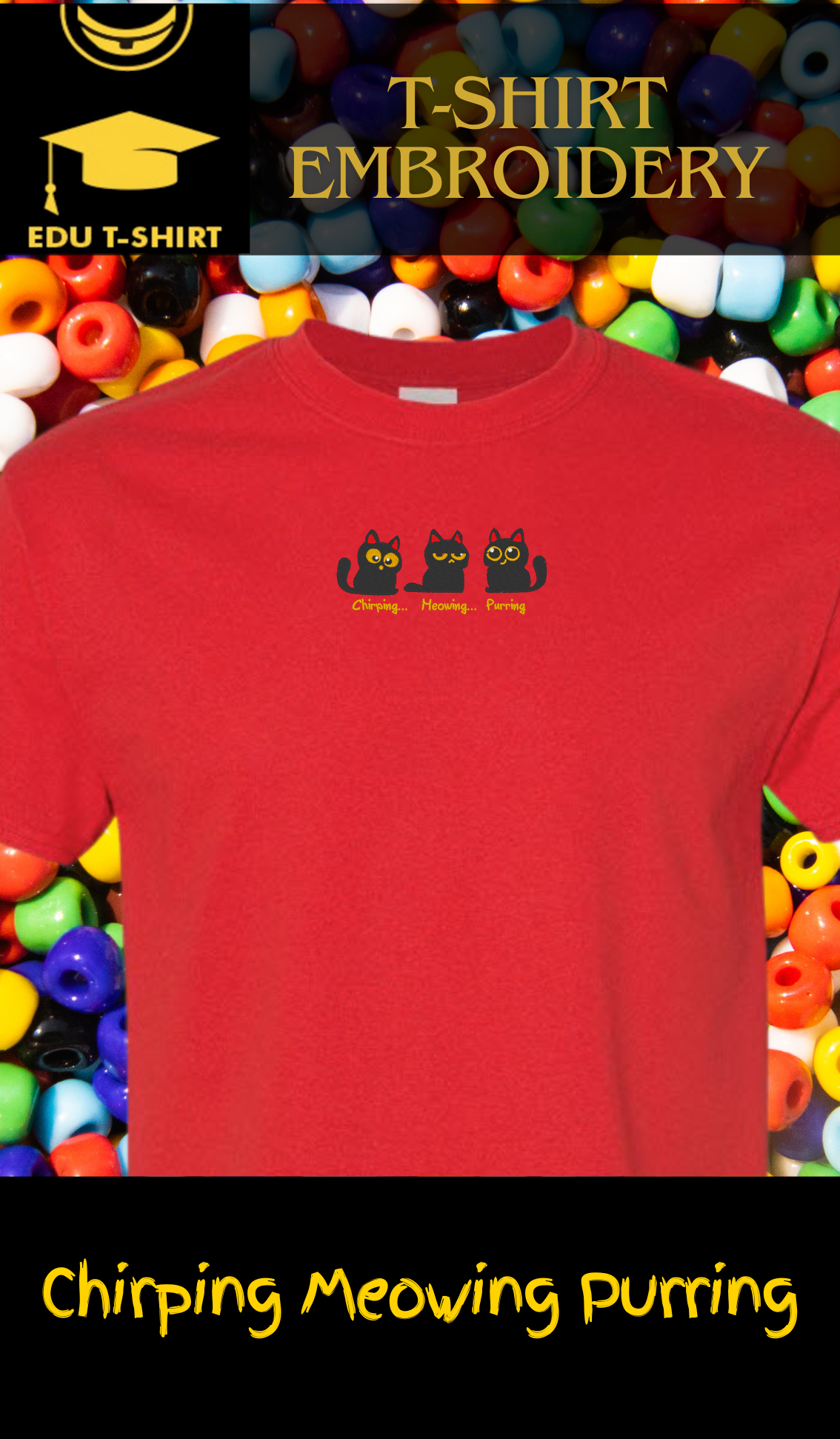 T-SHIRT EMBROIDERY of CAT Chirping Meowing Purring Tees Tshirt