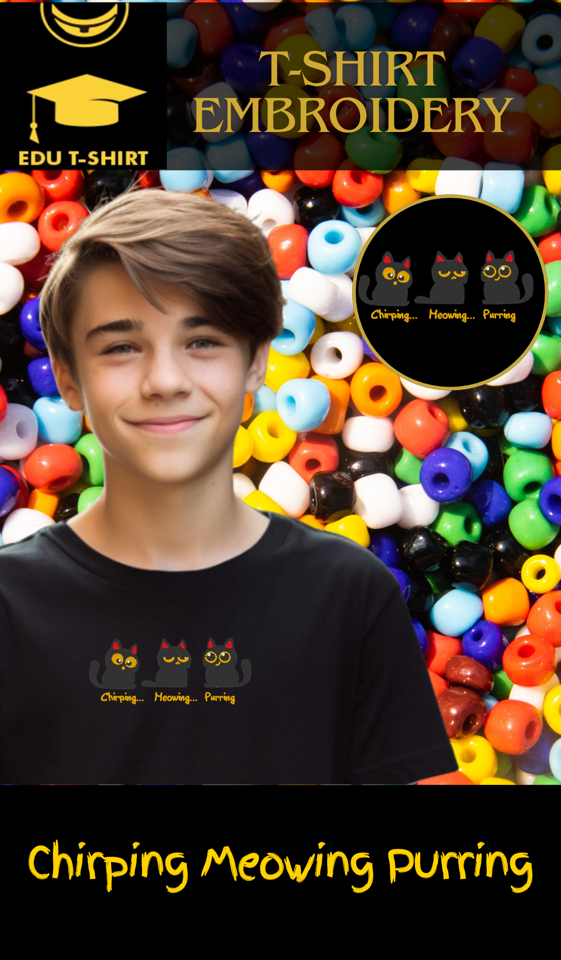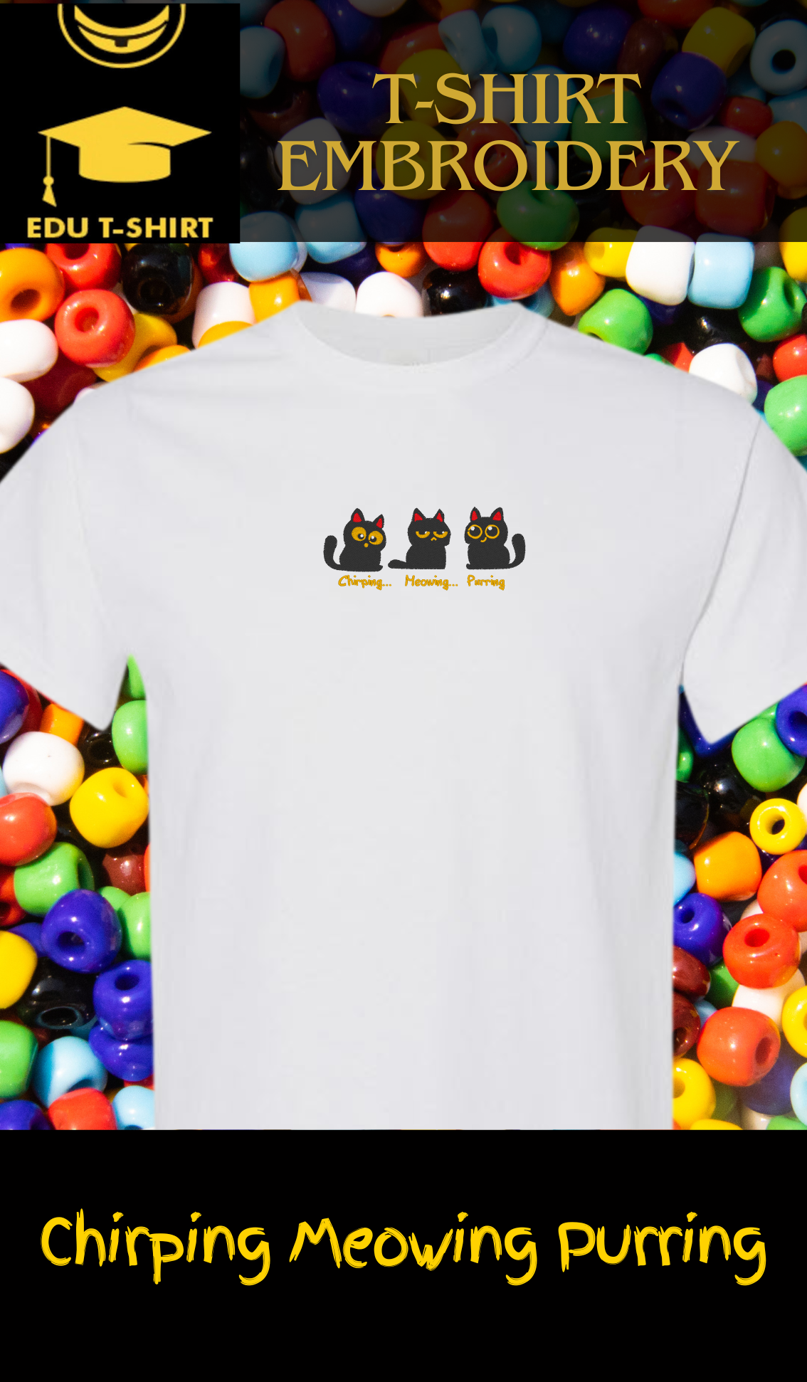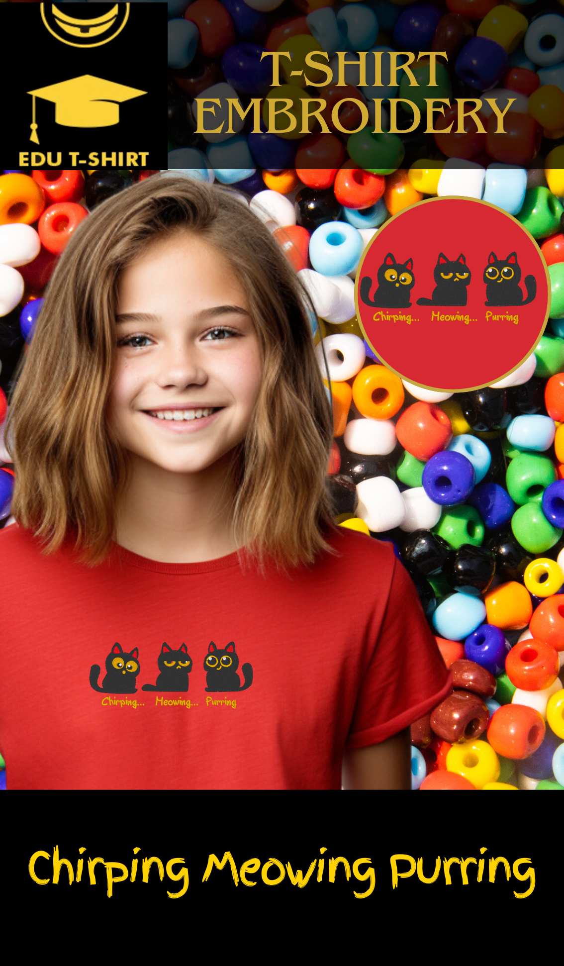 T-SHIRT EMBROIDERY of CAT Chirping Meowing Purring Tees Tshirt