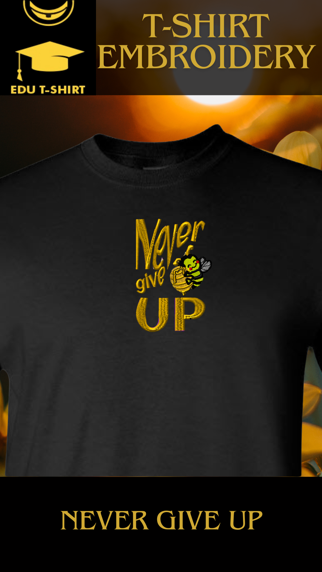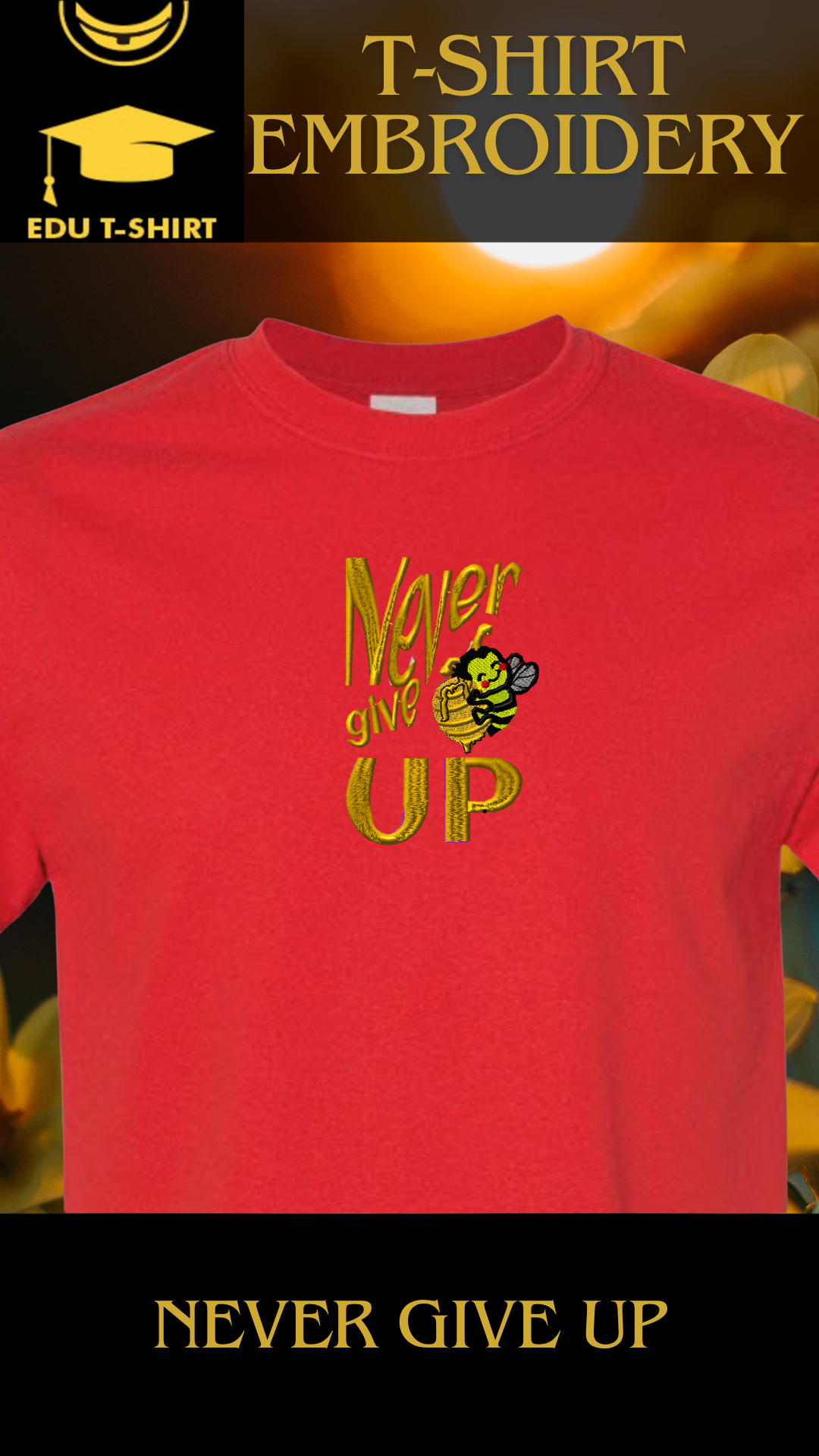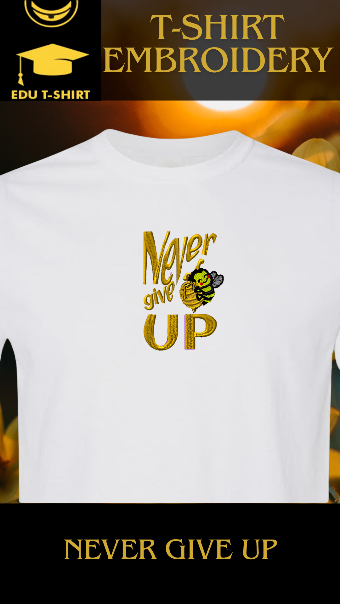 T-SHIRT EMBRIODERY of Honey BEE Never Give Up Tees