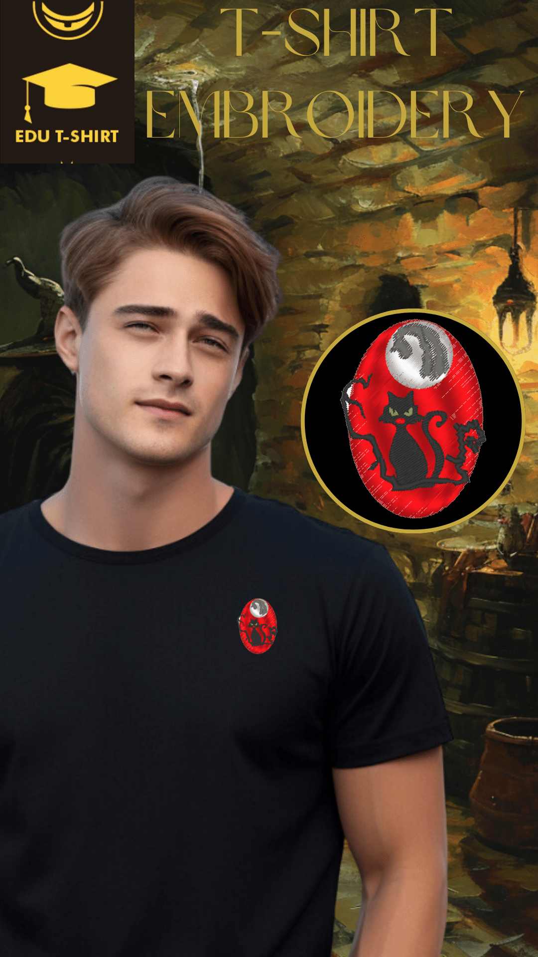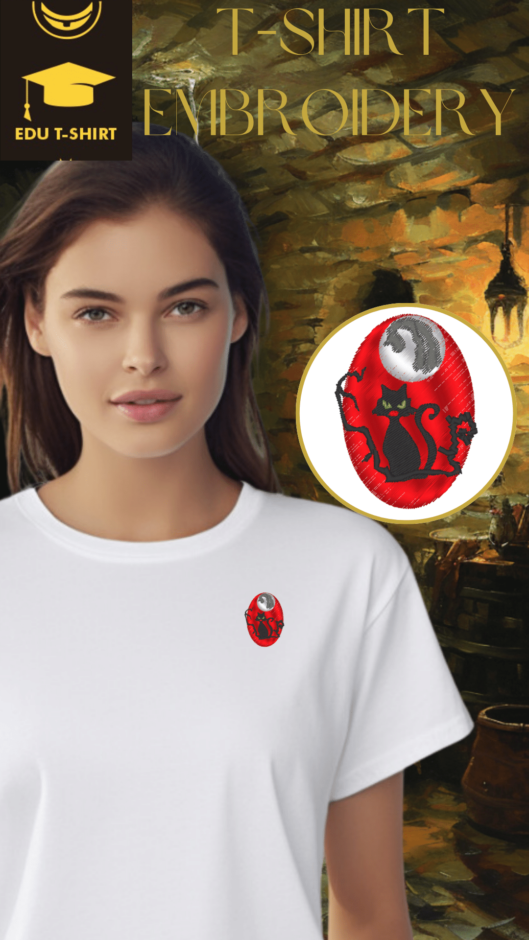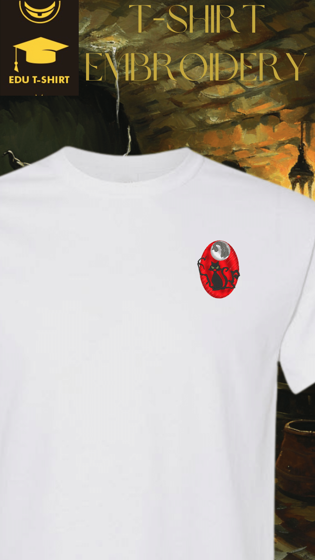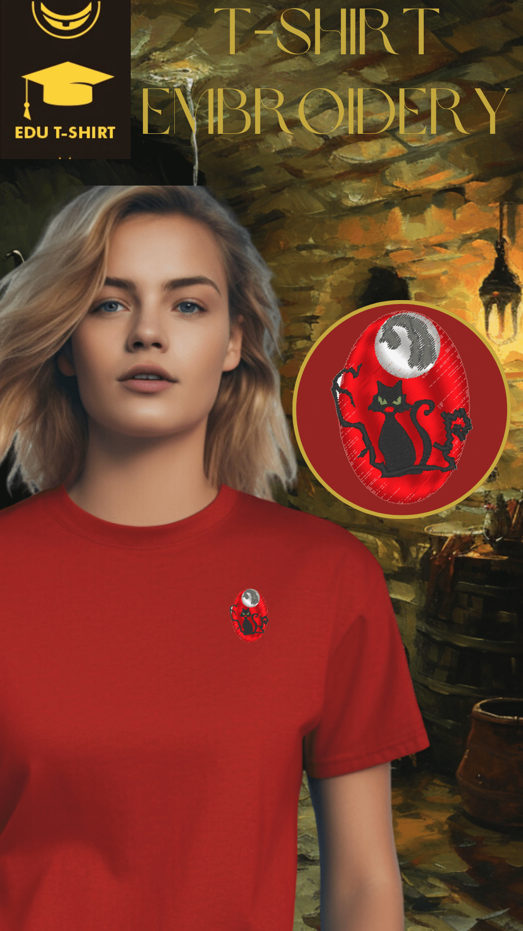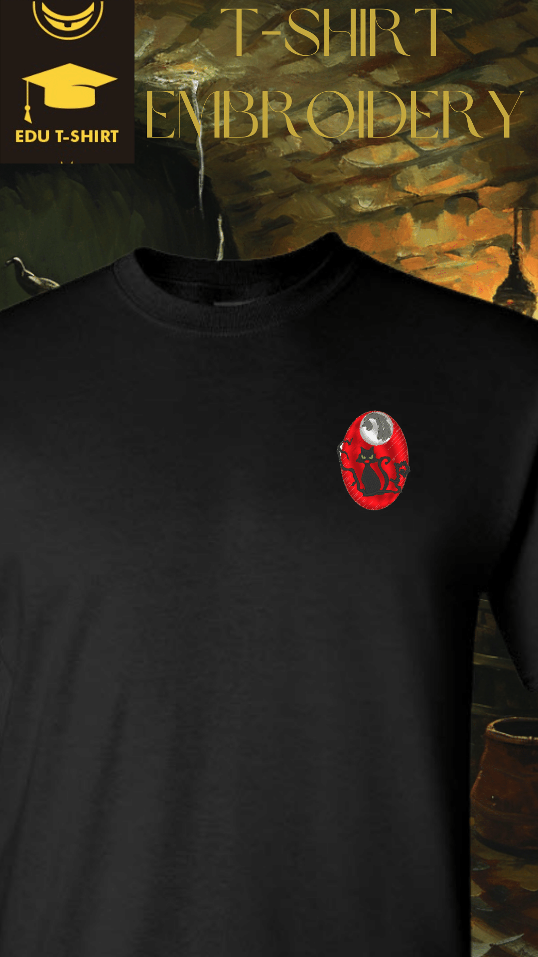 T-SHIRT EMBROIDERY of WIZARD Secret Spell Witch Cat Grimalkin Secret Magic