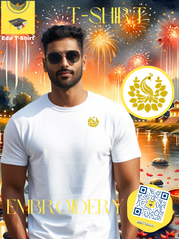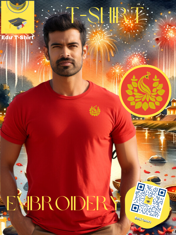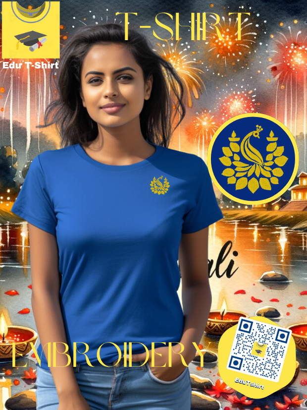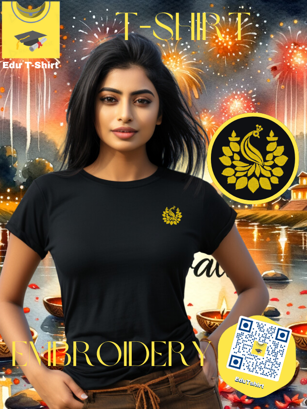 T-SHIRT with EMBROIDERY of Golden Peacock DEEPAVALI