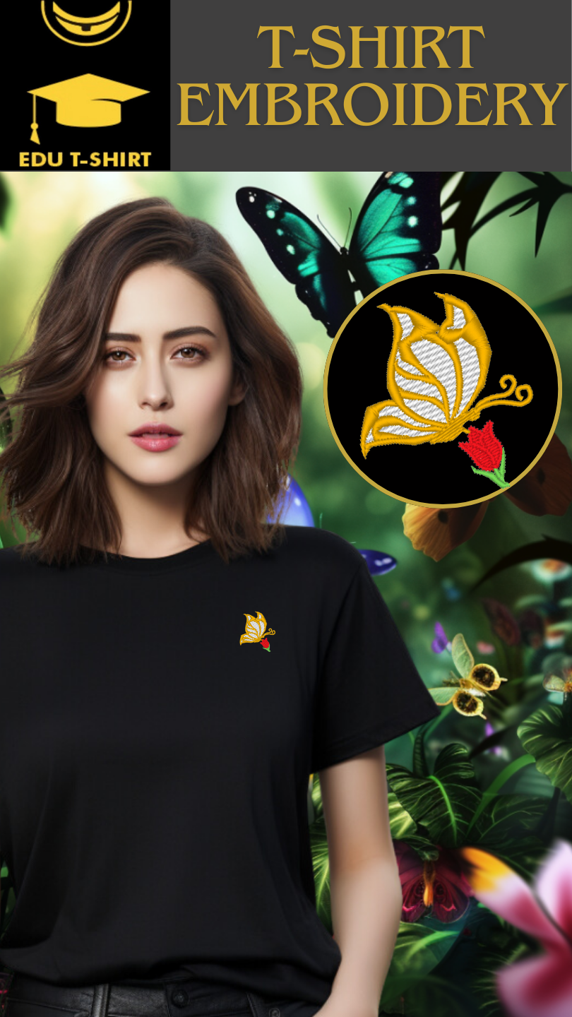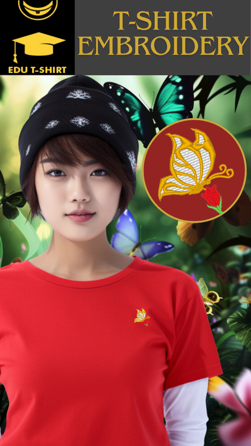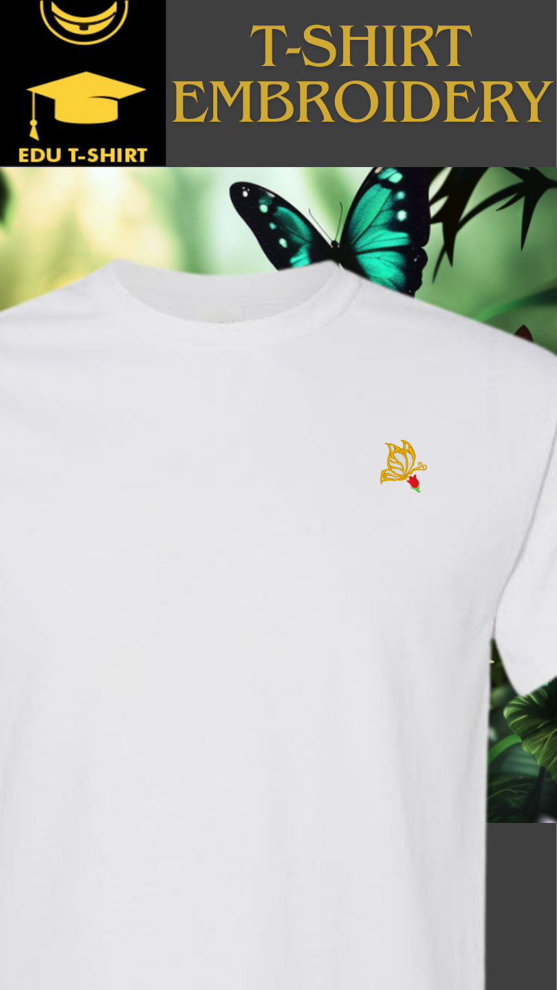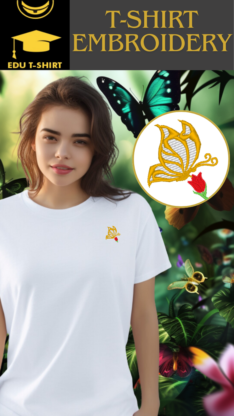 T-SHIRT EMBROIDERY Golden White BUTTERFLY Tees Tshirt