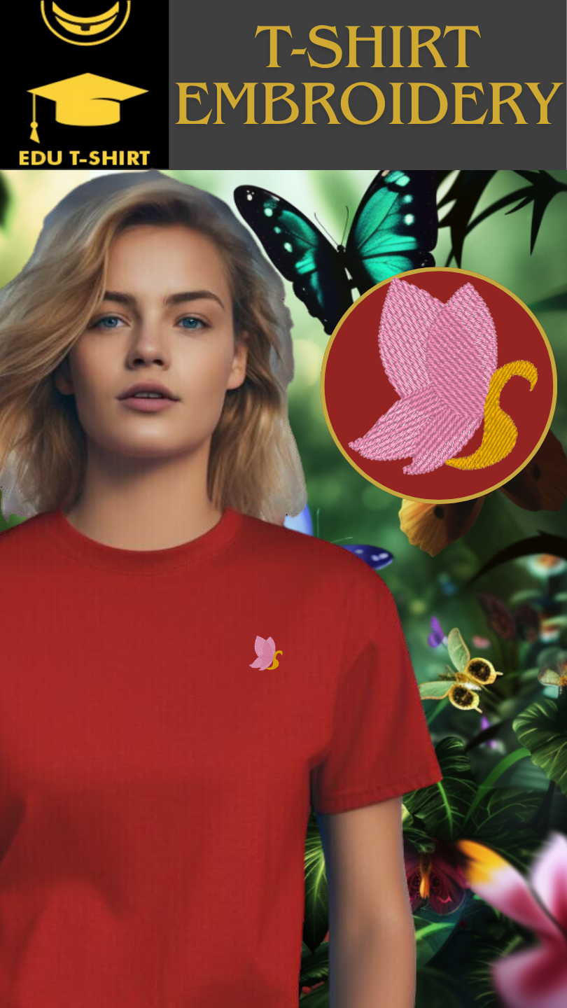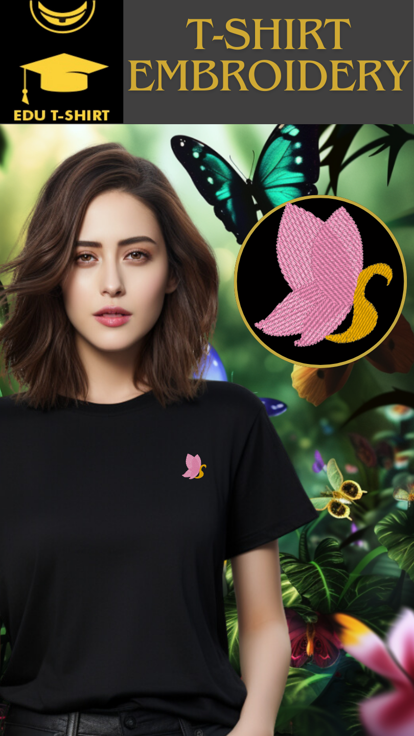 T-SHIRT EMBROIDERY PINKISH S BUTTERFLY