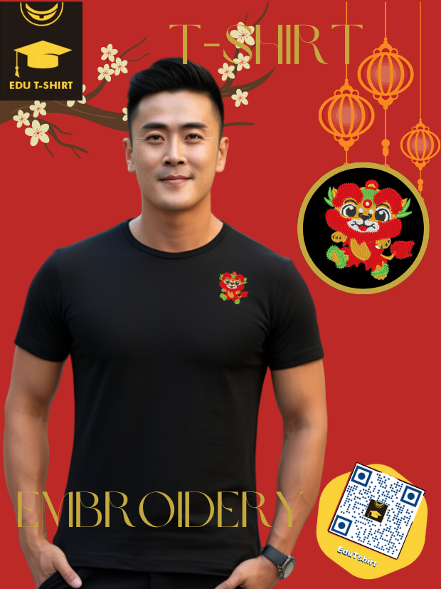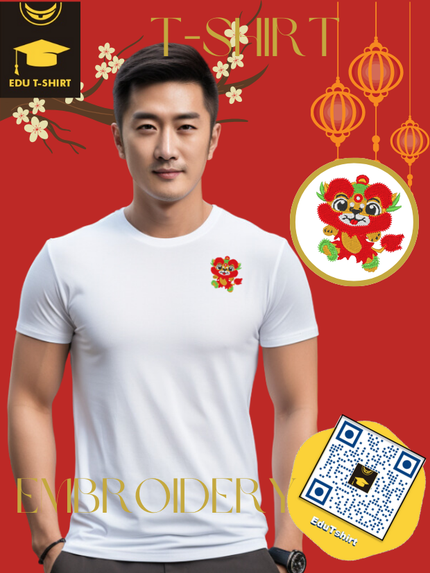 T-SHIRT with EMBROIDERY of a Lion Dance for Chinese New YEAR Season