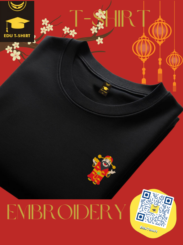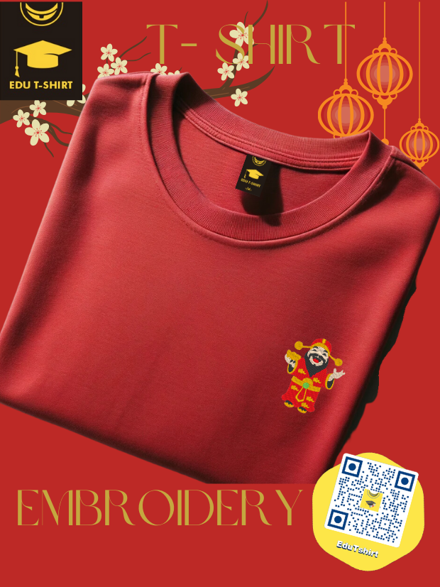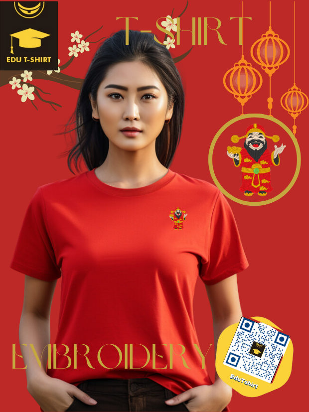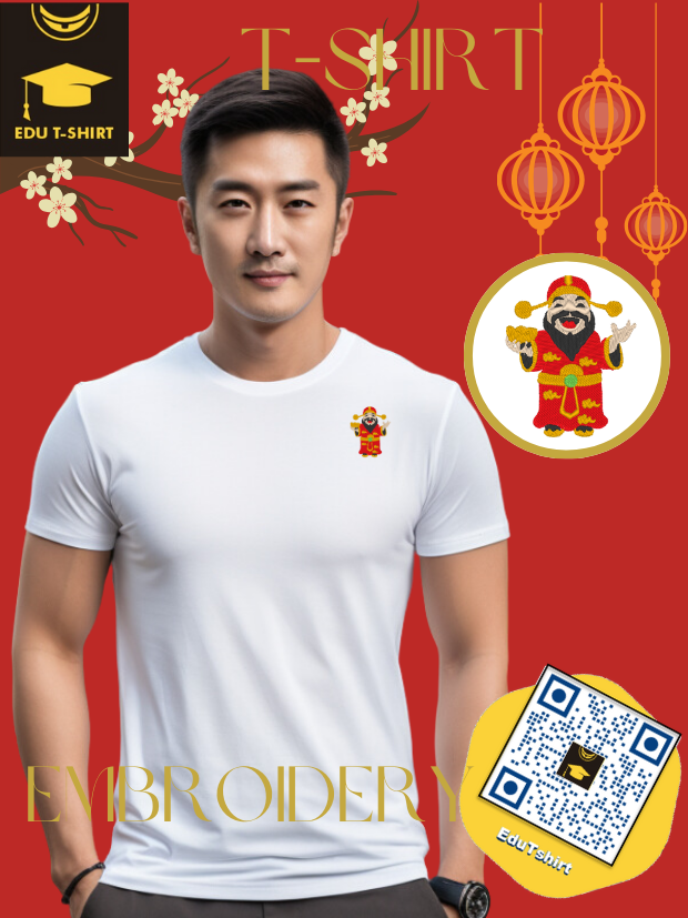 T-SHIRT with EMBROIDERY of God Of Wealth for Chinese New YEAR Season