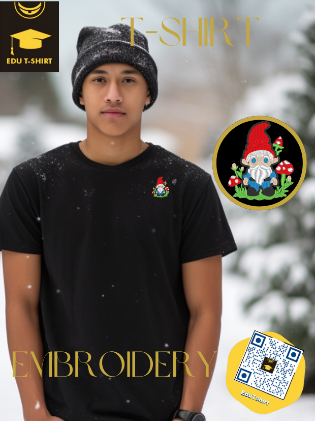 T-SHIRT with EMBROIDERY of Gnome for CHRISTMAS Season