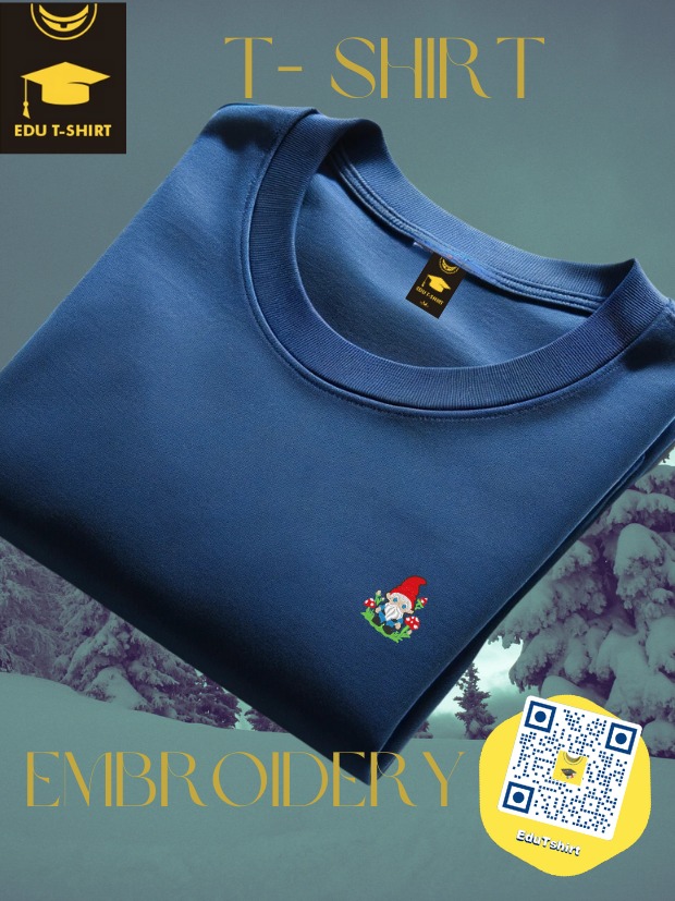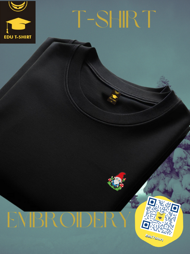 What sets this particular t-shirt apart is its delightful add-on embroidery of characters. Positioned strategically on the chest, the adorable design adds a touch of whimsy and personality to the shirt, making it a fun and unique choice for those who want to showcase their individual style.