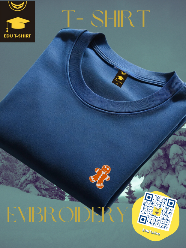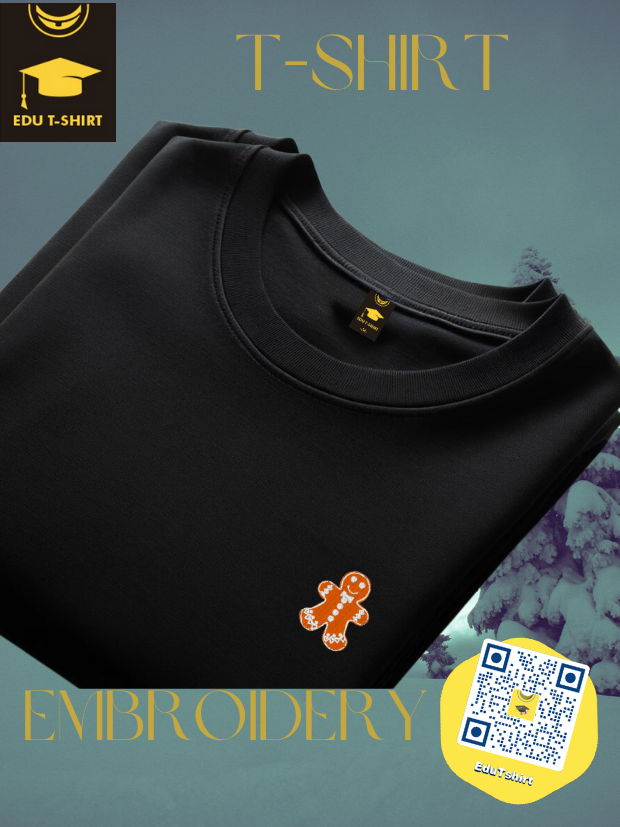 T-SHIRT with EMBROIDERY of Ginger Bread for CHRISTMAS Season