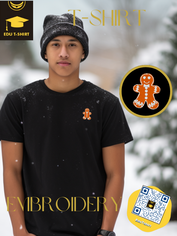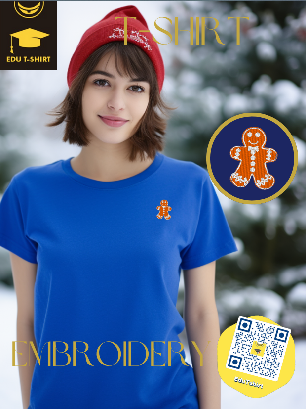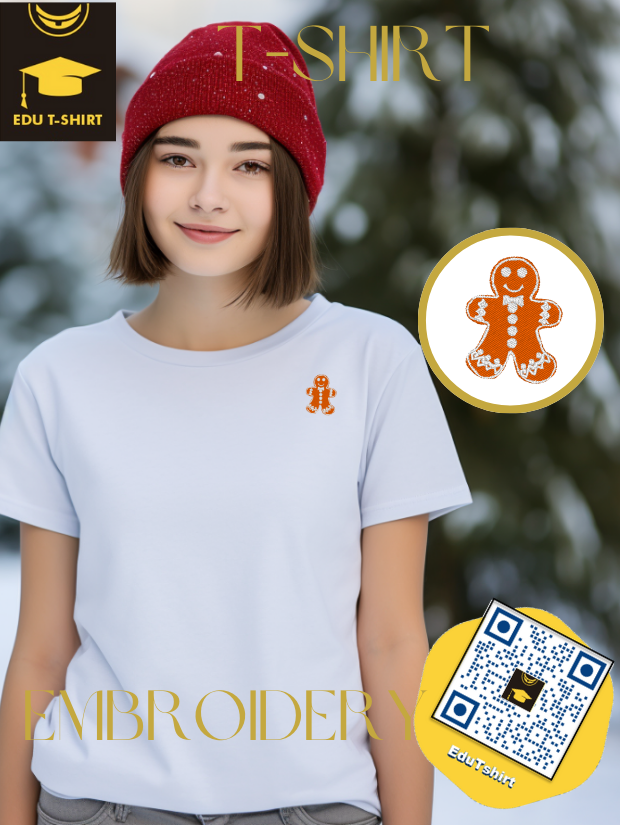 T-SHIRT with EMBROIDERY of Ginger Bread for CHRISTMAS Season