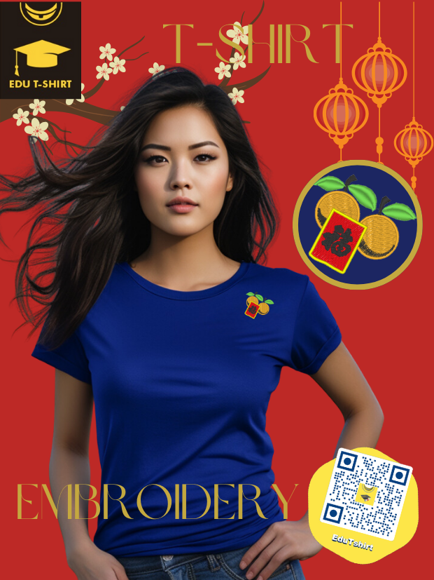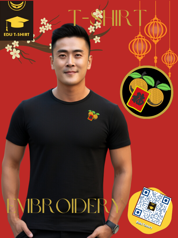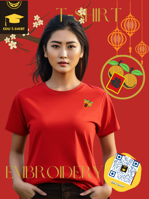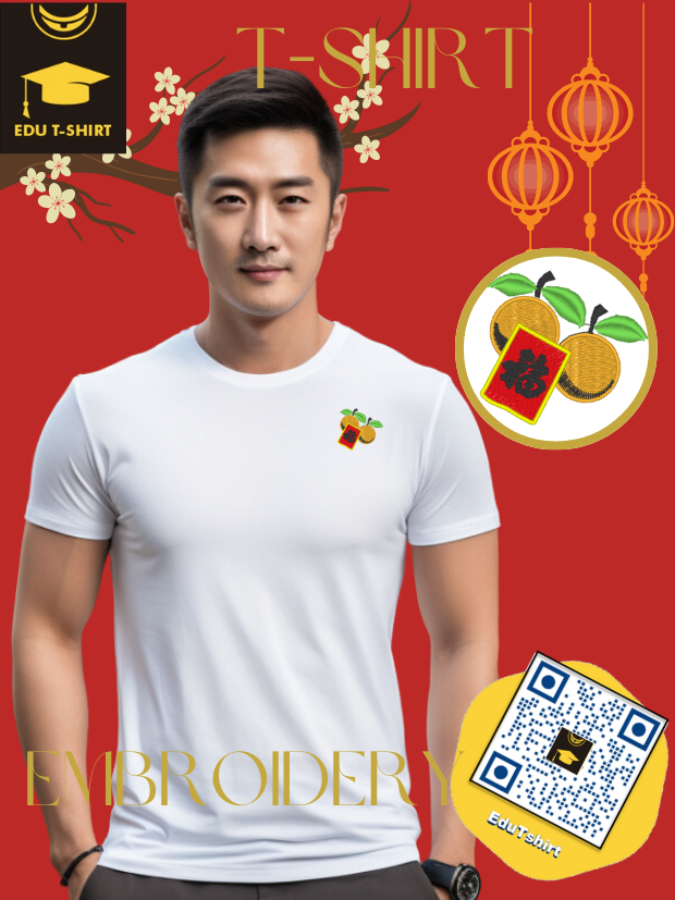 T-SHIRT with EMBROIDERY of Oranges and Ang Pow for Chinese New YEAR Season