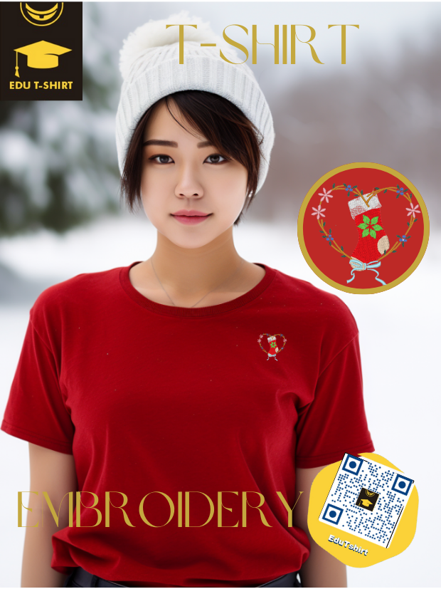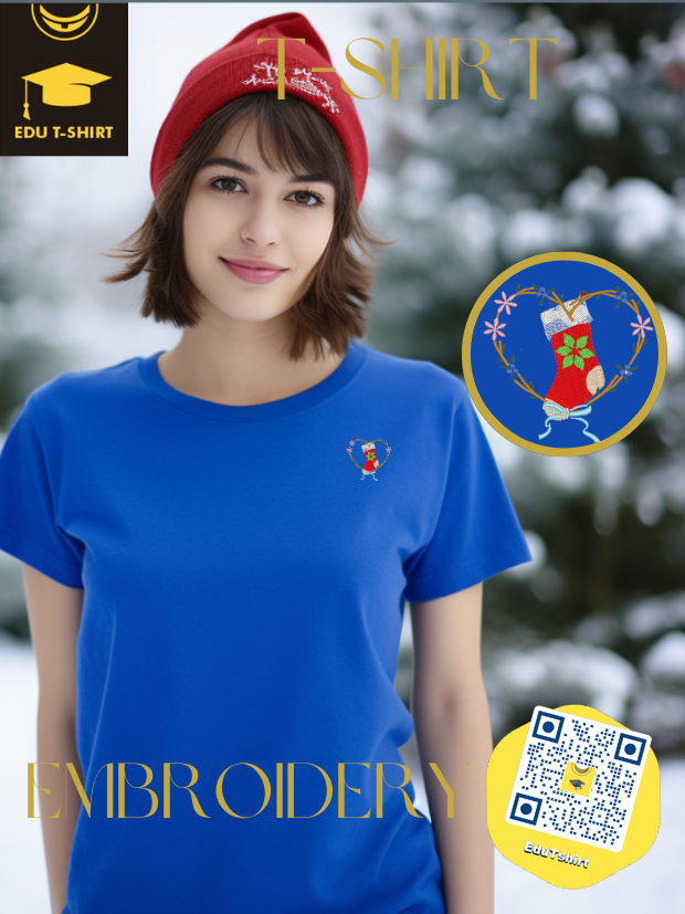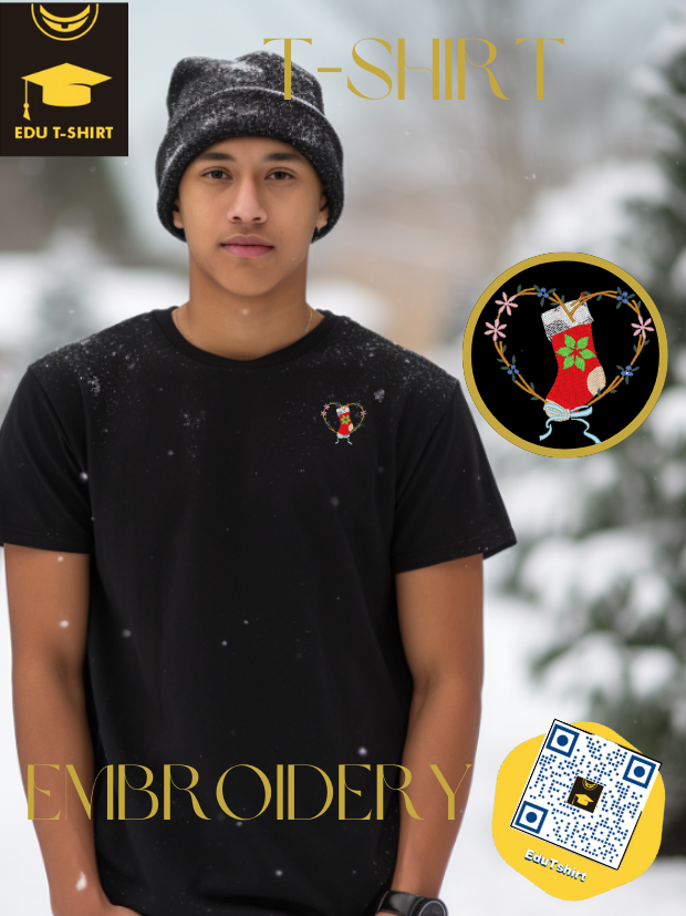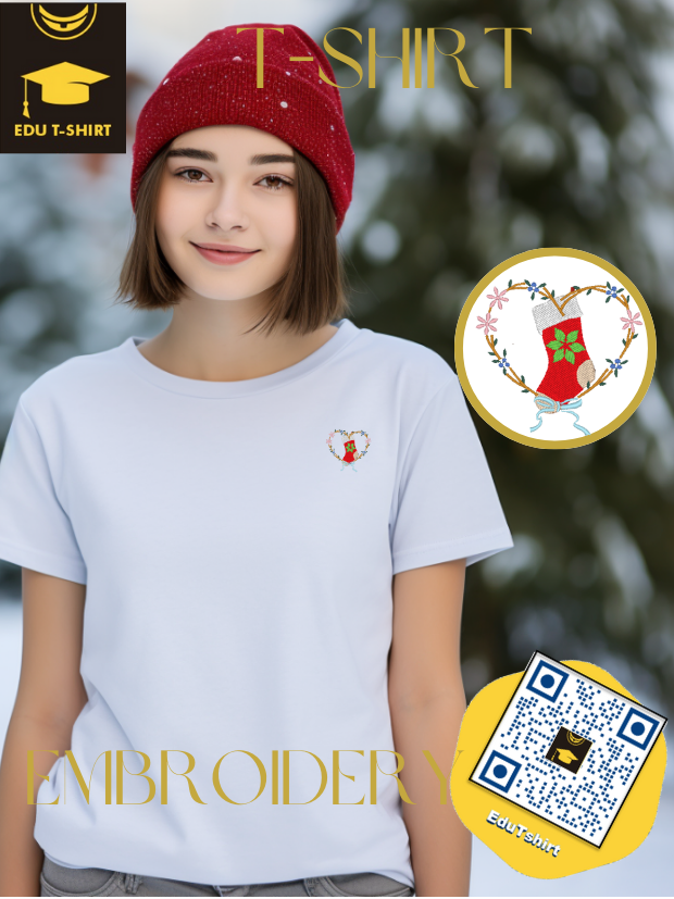 T-SHIRT with EMBROIDERY of Christmas Stocking for CHRISTMAS Season