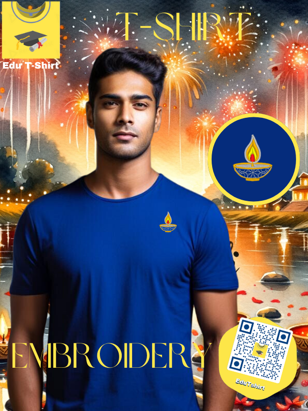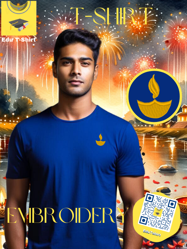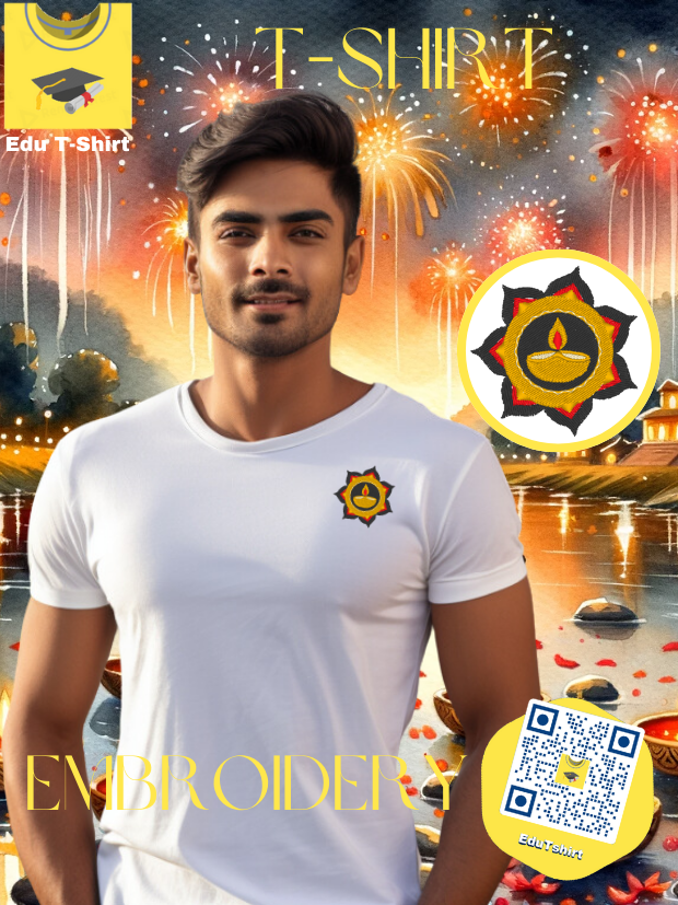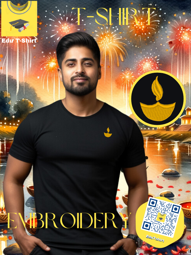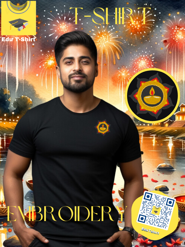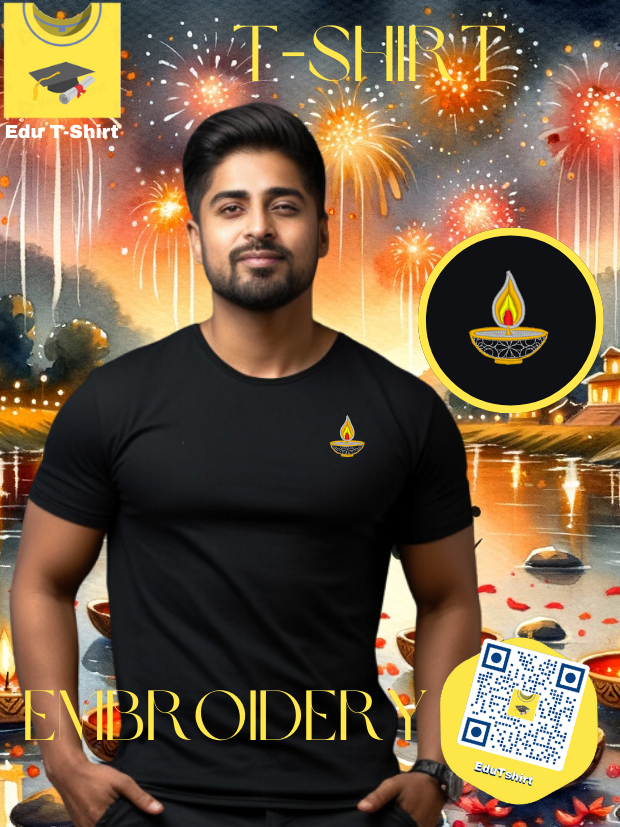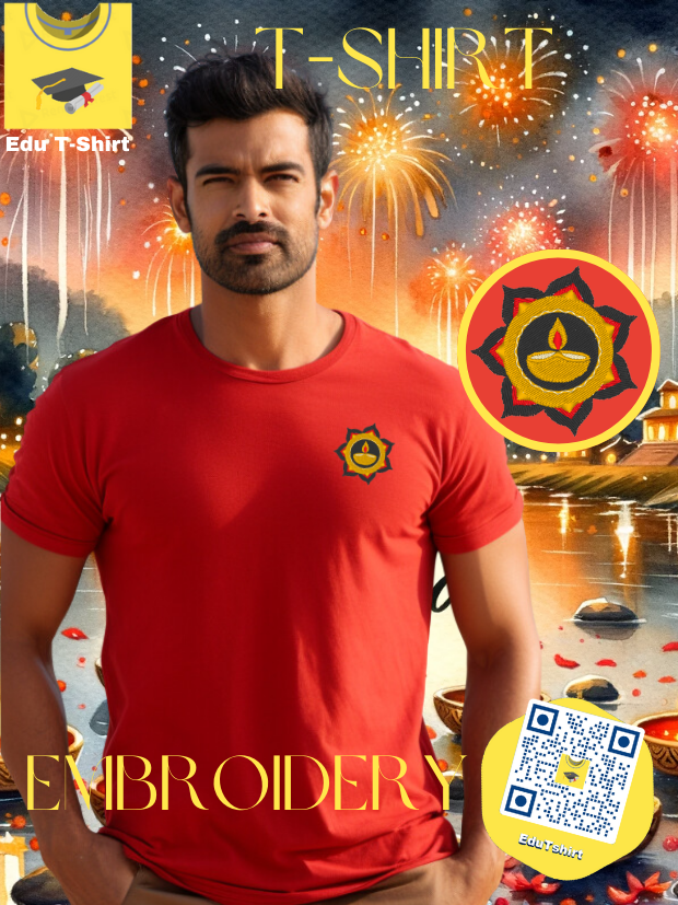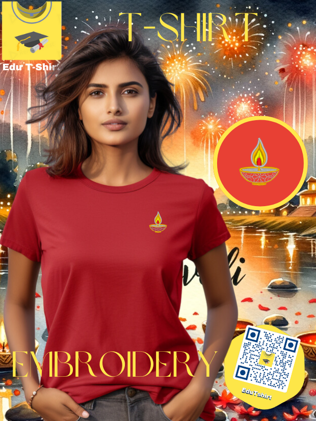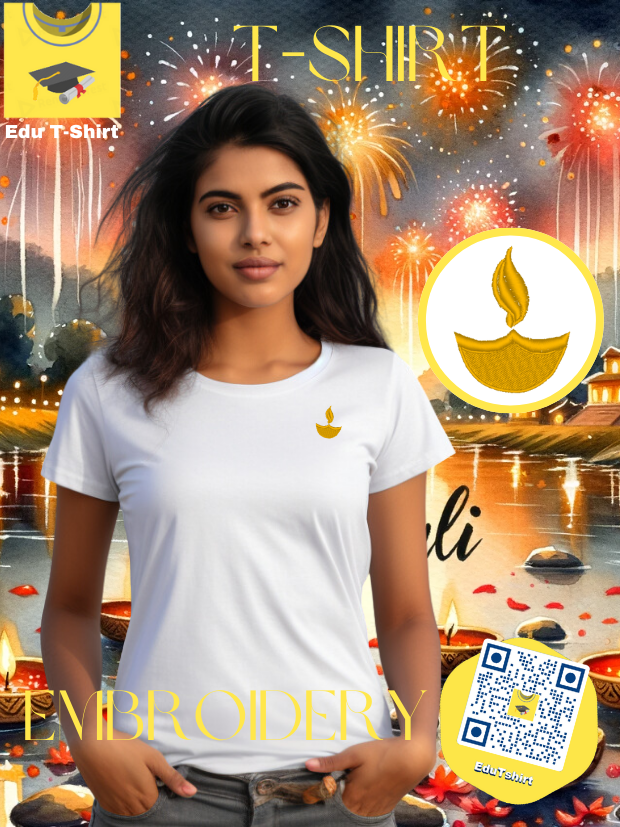 T-SHIRT with EMBROIDERY of Diya Candle DEEPAVALI