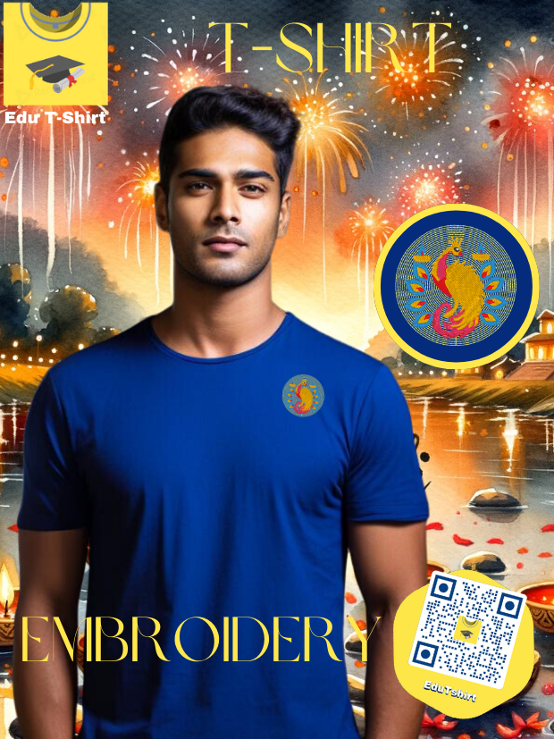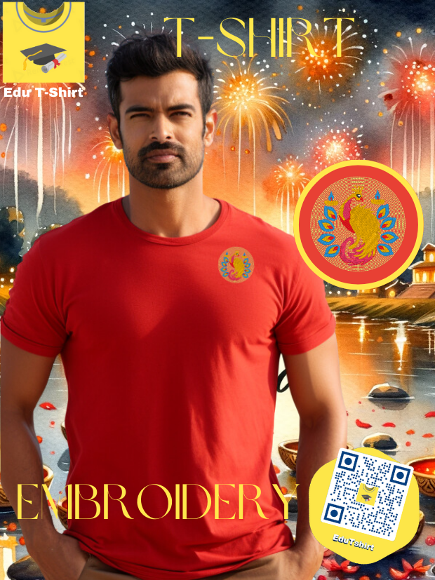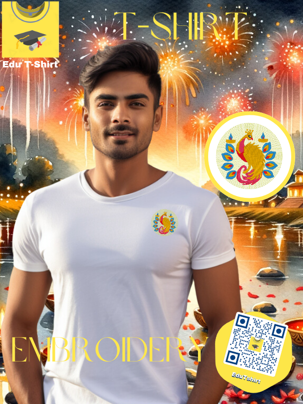 T-SHIRT with EMBROIDERY of a Peacock DEEPAVALI