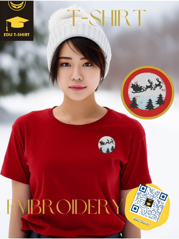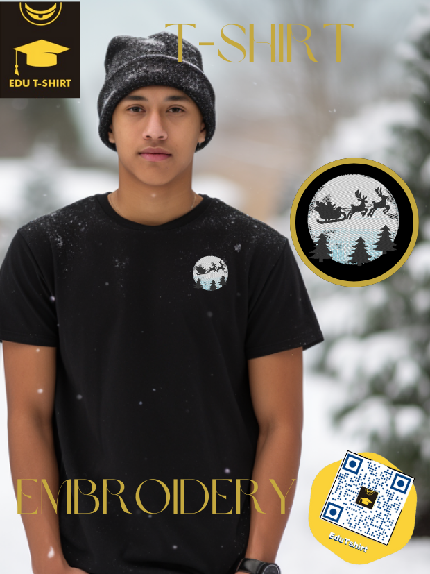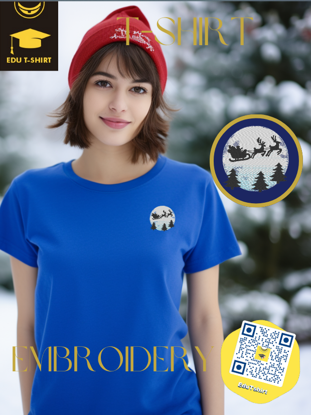 T-SHIRT with EMBROIDERY of Santa Sleigh for CHRISTMAS Season
