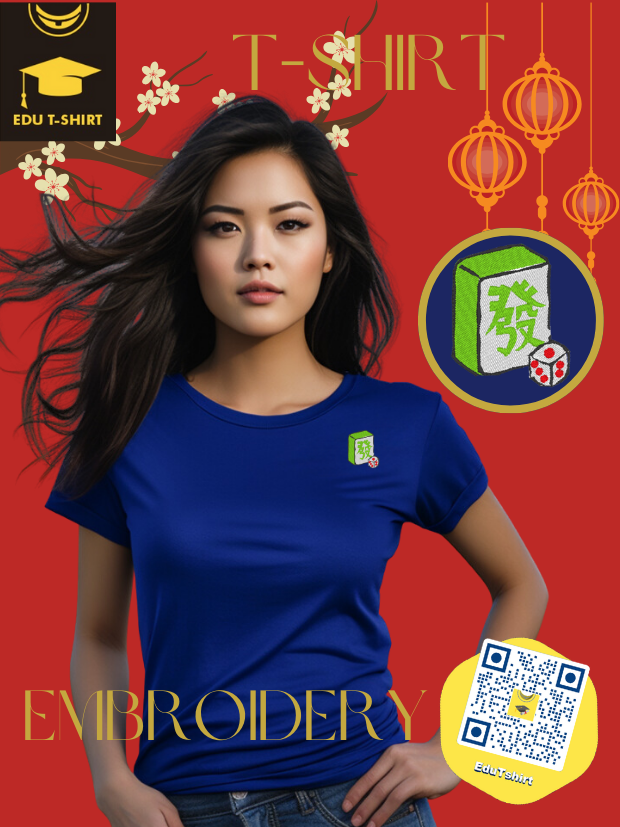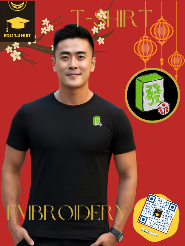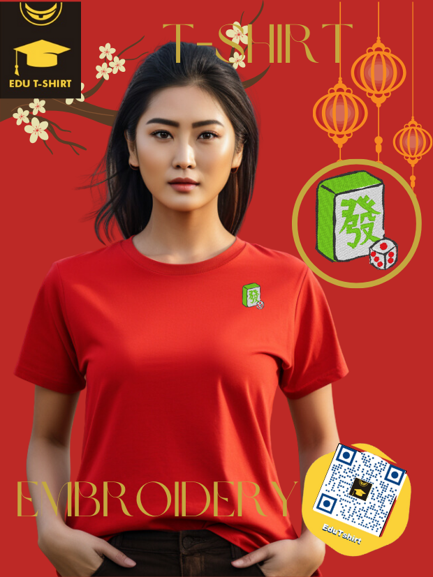 T-SHIRT with EMBROIDERY of a Mahjong Tile for Chinese New YEAR Season