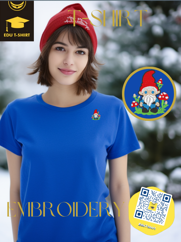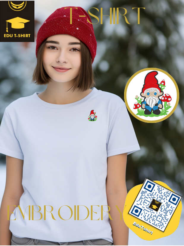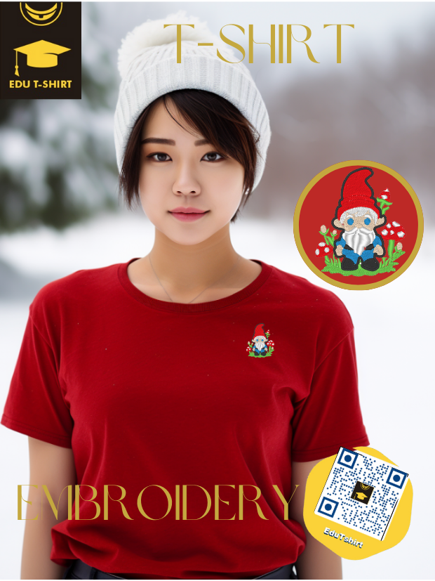 T-SHIRT with EMBROIDERY of Gnome for CHRISTMAS Season