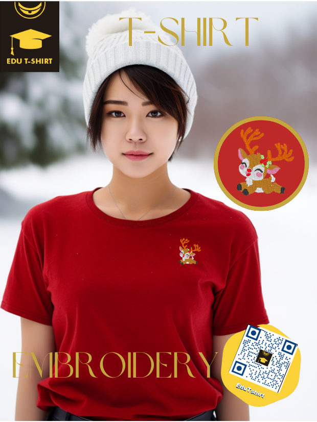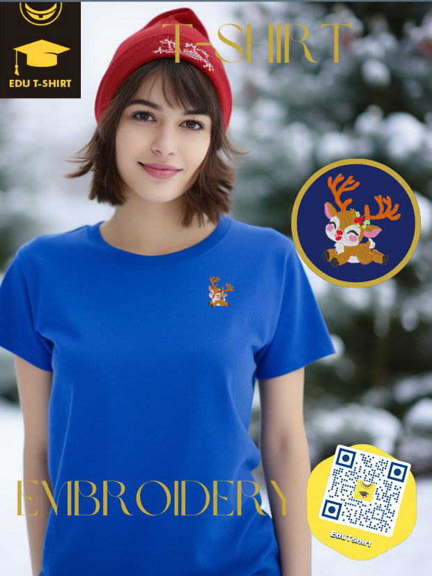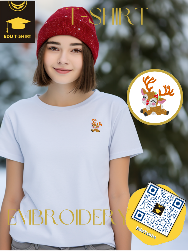 T-SHIRT with EMBROIDERY of Reindeer for CHRISTMAS Season