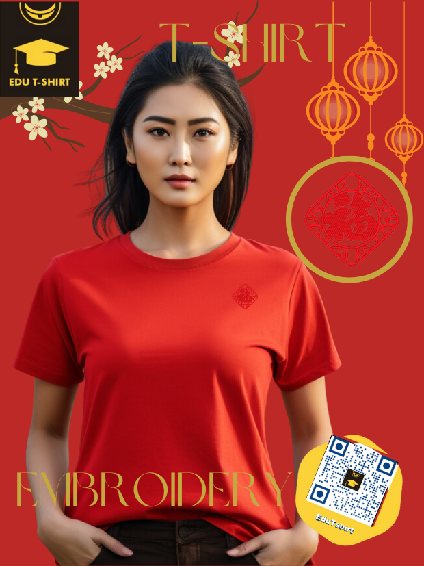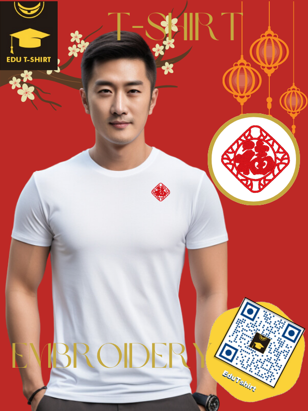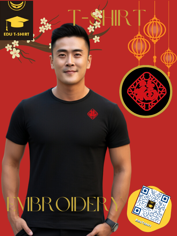 T-SHIRT with EMBROIDERY of a FU for Chinese New YEAR Season