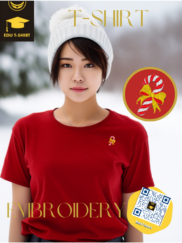 T-SHIRT with EMBROIDERY of Candy Cane for CHRISTMAS Season